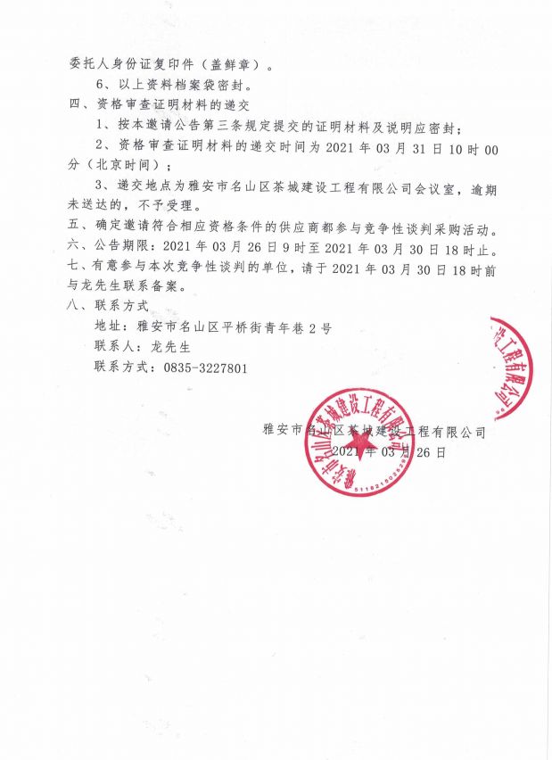 雅安市名山區(qū)皇茶大道安置房項(xiàng)目 護(hù)窗圍墻欄桿競爭性談判邀請公告